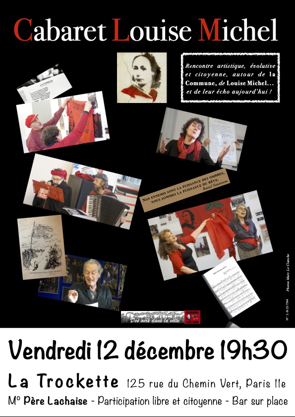 Le 12 décembre 2025 se tiendra le cabaret Louise Michel, un spectacle participatif autour de la Commune à Paris.
