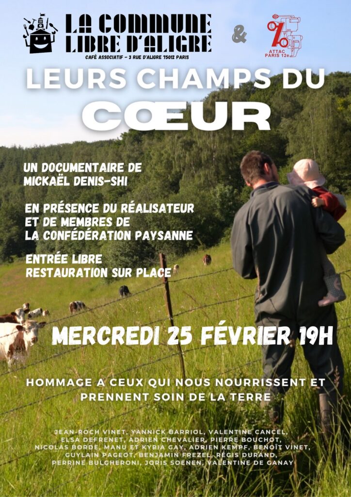 Le 25 février 2026, le groupe Attac 12 organise un ciné-débat autour du film « Leurs champs du coeur », de Mickaël Denis-Shi – Le vrai coût de notre alimentation.