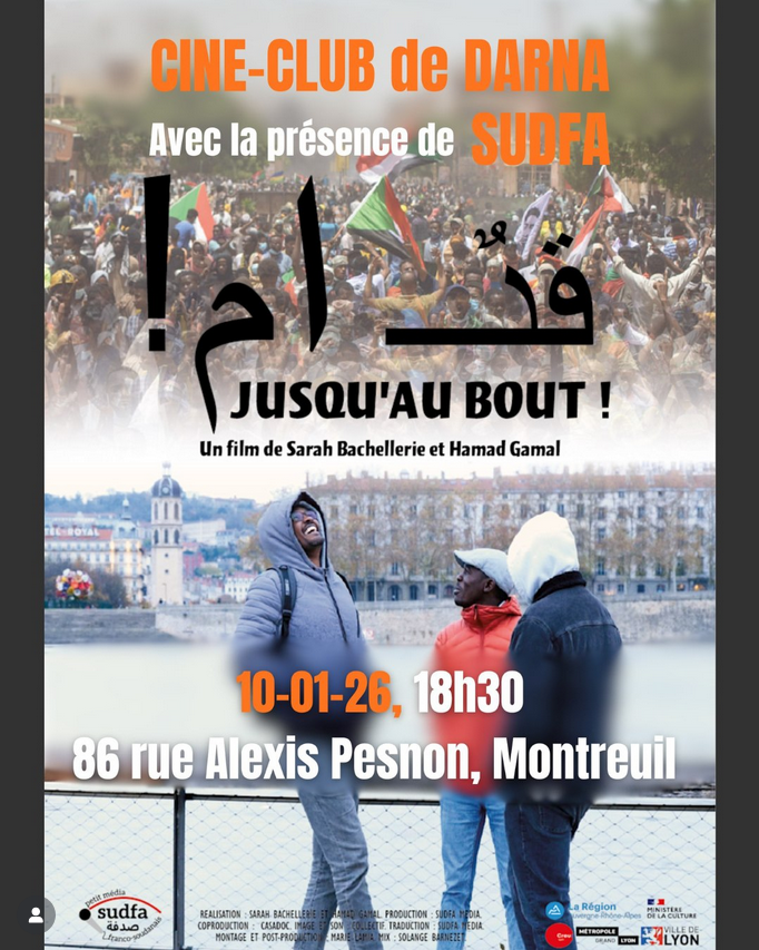 Le samedi 10 janvier, le ciné-club de Darna projette “قدام Jusqu’au-bout” avec la présence de membres de Sudfa, média franco-soudanais.