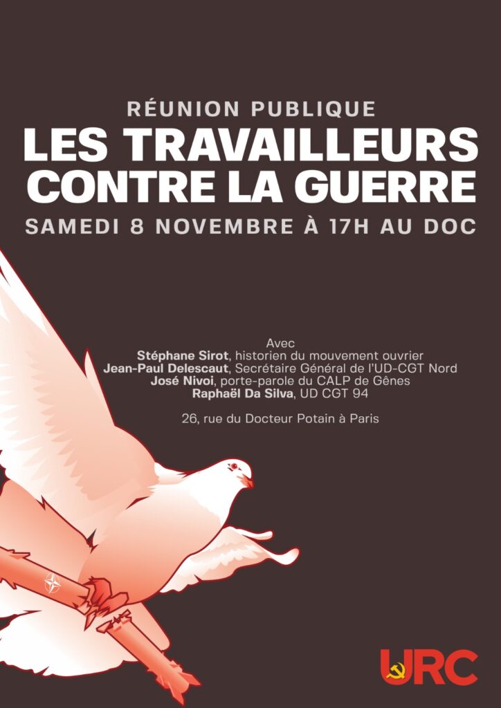 Le 8 novembre 2025 une réunion publique est organisée par URC « Les travailleurs contre la guerre. Organisons-nous ! » à Paris.