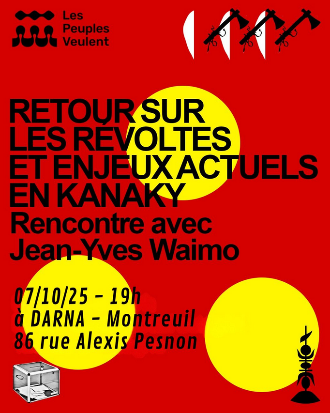 Le 7 octobre 2025 à l’initiative du réseau internationaliste Les Peuples Veulent, une soirée est organisée autour de la révolte en Kanaky à Montreuil.
