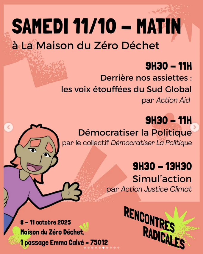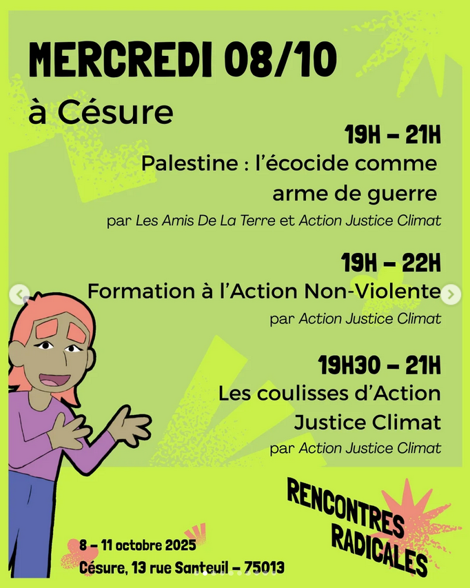 On va parler libération de la Palestine, carbofascisme, Action Non Violente… Les Rencontres Radicales sont là pour te donner de nouvelles clefs pour te mobiliser, que tu sois militant·e chevronné·e ou nouvelleau !