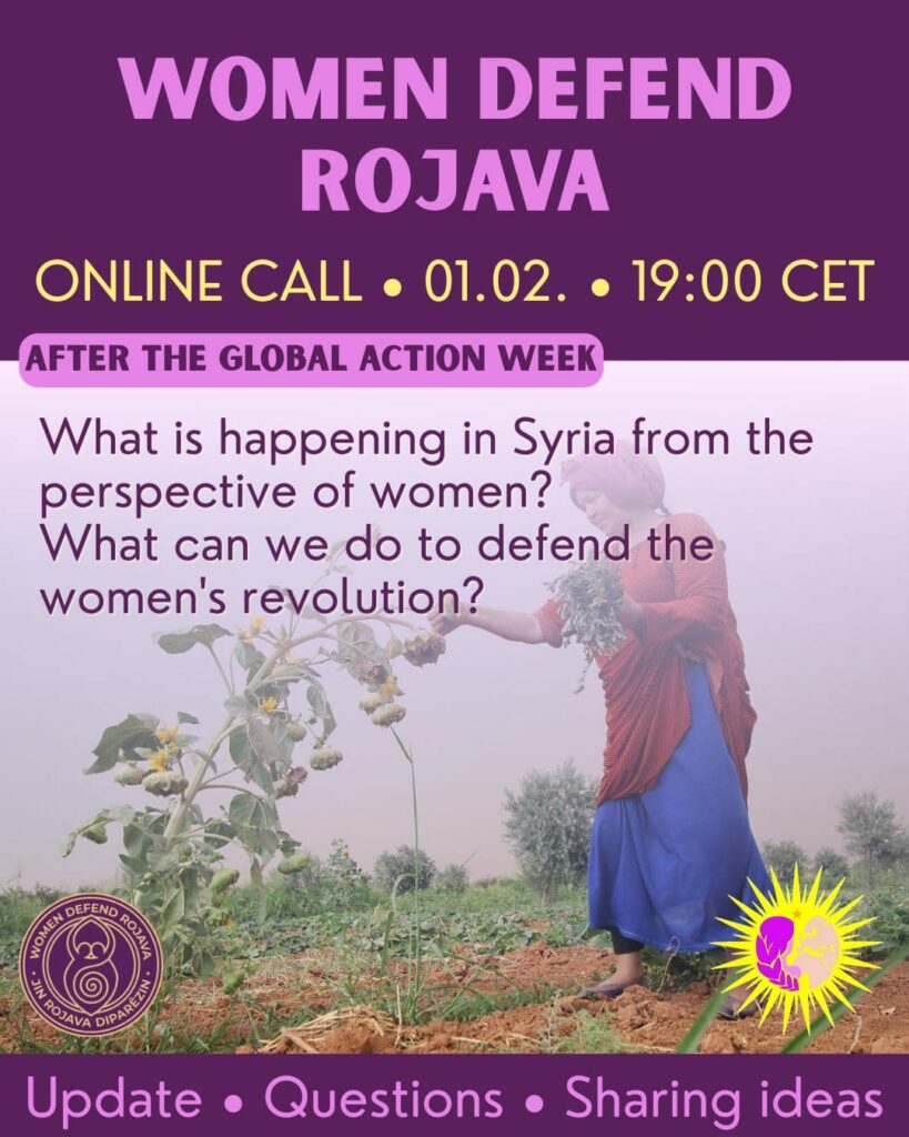 Le 1er février 2026 se tiendra une réunion en visioconférence avec le collectif Women Defend Rojava pour partager les nouvelles venant du Rojava et piste d’actions collectives de solidarité.