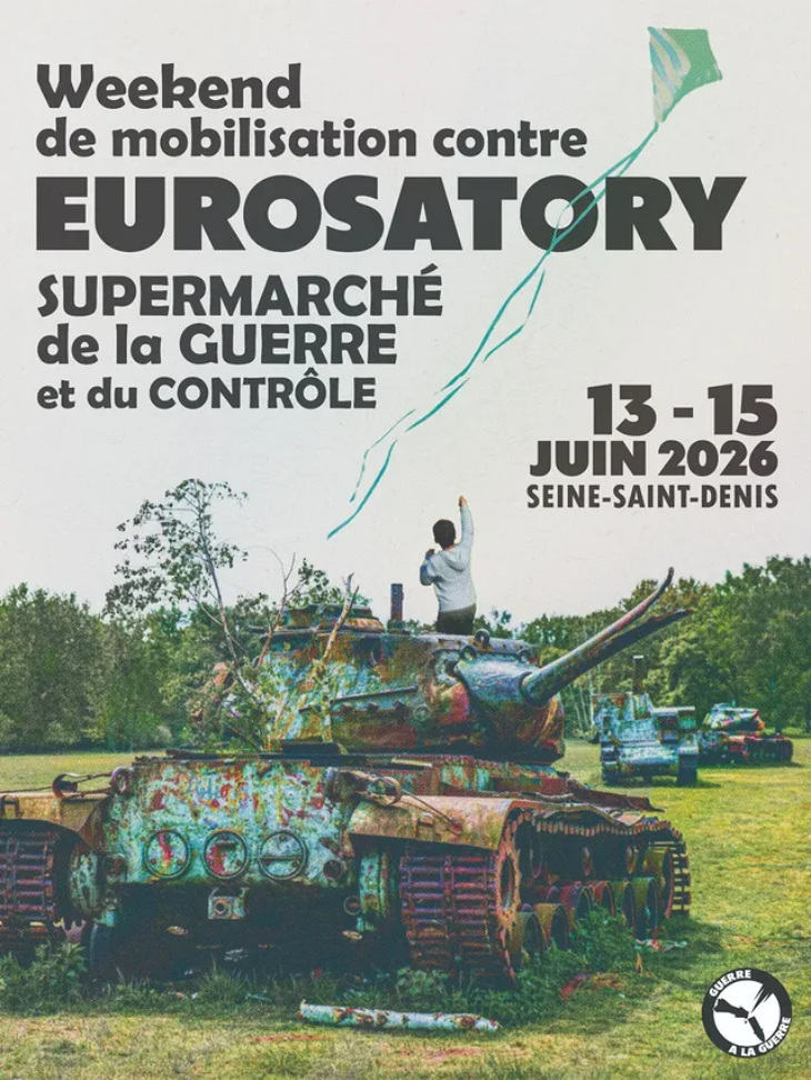 Du 13 au 15 juin 2026, la coalition Guerre à la guerre invite tous ceux qui s’opposent à cette démonstration de militarisme mortifère à se retrouver en Seine-Saint-Denis pour un weekend de mobilisation, mais aussi d’échange, de rencontre, de formation et de festivité avant l’ouverture du salon Eurosatory.