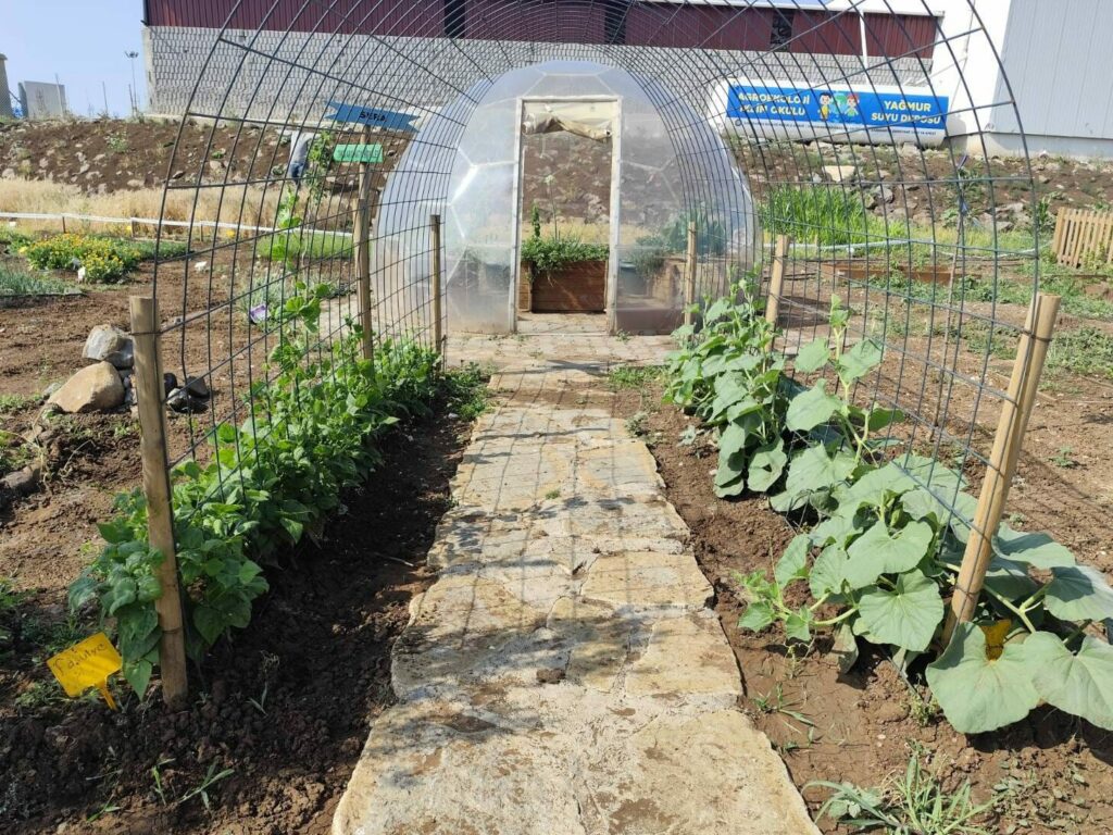 Après 2016, les kayyums* [des administrateurs] ont été nommés [par l’État turc], nous avons été licencié et le camp de réfugiés a été fermé. Suite à cela, nous nous sommes réuni·es à six ou sept personnes pour créer une communauté agricole et nous avons poursuivi nos activités. Nous avons continué à organiser des ateliers et des activités de partage de connaissances, et nous avons créé une bibliothèque de semences. En 2024, après 8 ans de gestion les kayyums, nous avons recommencé à travailler avec la municipalité. Nous avons crée une école sur l’agroécologie et le climat dans un bâtiment en pisé construit à partir d’un mélange de terre,de paille et de laine. Dans cette école nous avons mis en place une bibliothèque de semences, donné des cours d’agroécologie aux enfants et organisé de nombreuses autres activités.
