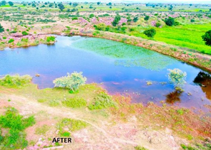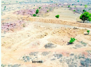 Photographies montrant les transformations opérées par la construction de johad sur le territoire. ©Tarun Bharat Sangh