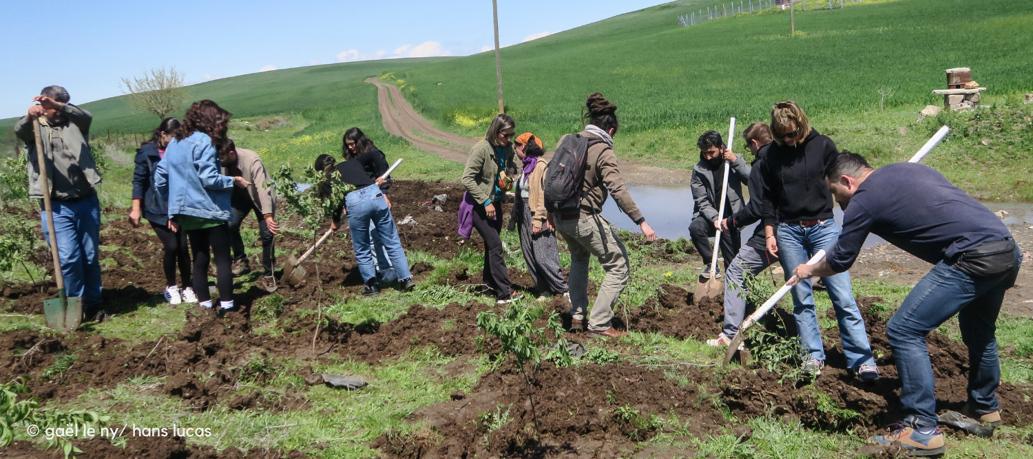 - Le Mouvement Écologique Mésopotamien mène quant à lui des projets d’agroécologie et de gestion collective de l’eau, avec un jardin populaire et une bibliothèque de semences locales, affirmant la volonté de lier écologie et autonomie. Ses membres nous ont décrit comment la destruction environnementale — barrages, mines, projets urbains — s’ajoute à la guerre politique.